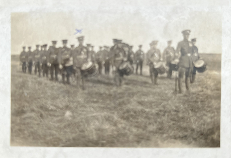 As is evident from the image at the top of this post, not all the photos are great. That image is just a quick photo taken on my phone to illustrate the blogpost; the one I’ll take later on my camera will be better quality. However, the original is very small (2″ x 3 1/4″ / 5cm x 9cm), and with this slight enlargement, the image of the men is blurred. I can improve on this but not much. However, it has value as the only photo I have of the band in ‘marching’ mode and will sit alongside better images of them in seated format.