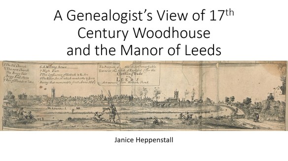 This presentation relates to research I did into one of my own ancestral lines who lived in the then small hamlet of Woodhouse that was part of the Manor of Leeds. The focus of the talk is on the local and social history, the types of records available at this time and why an understanding of all this is important when researching in the seventeenth century. For family history groups, it can also include some research tips useful for the period.