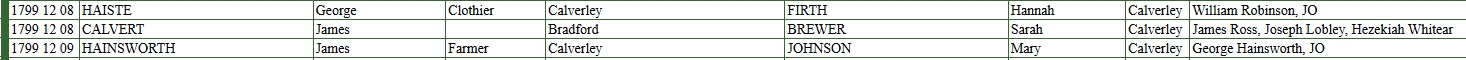 There are other types of modern transcripts. If you’re lucky you might just come across a local genealogy website relevant to your interests with dedicated researchers who have transcribed lots of documents and made them freely available. The following is from such a site: CalverleyInfo. Here we can see a very full transcription (D) of James and Sarah’s marriage.
